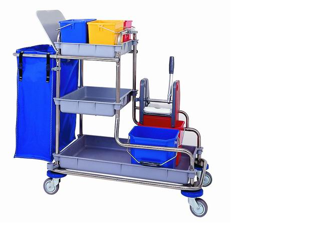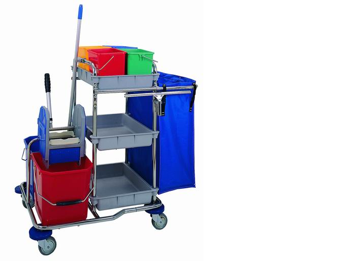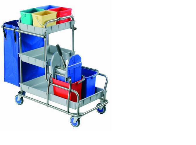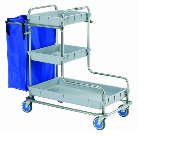 CARRO LIMPIEZA INOX 3 BANDEJAS + 3 BOLSAS