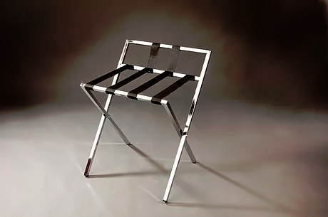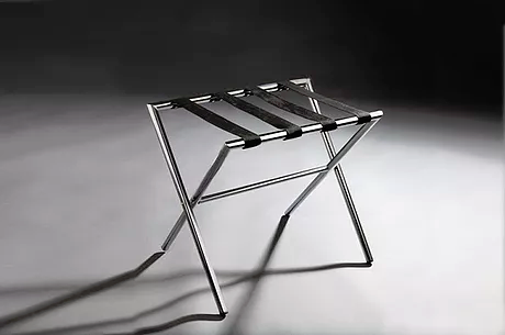SOPORTE PARA MALETAS DE HOTEL EN INGLETE METÁLICO CROMADO