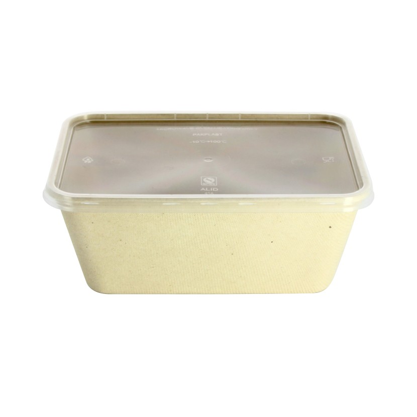 ENVASE RECTANGULAR COMPOSTABLE 750 CC. + TAPA