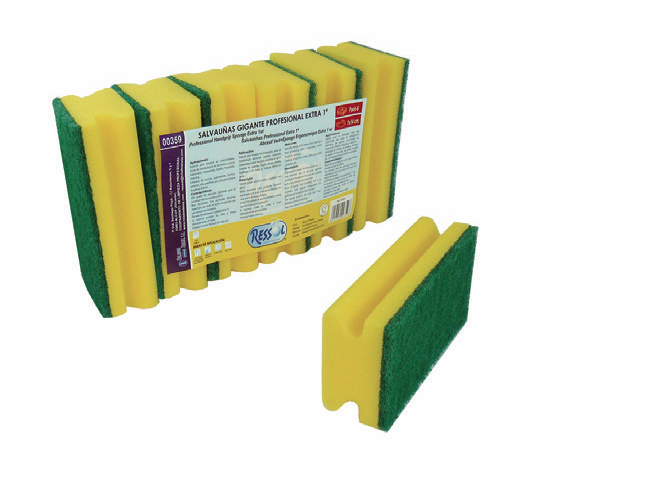 Esponja + fibra verde Extra. Calidad 1ª. Especial para limpieza de cocinas, quemadores, suelos y en general para limpiezas difíciles.La fibra limpia las superficies y la esponja limpia y seca.