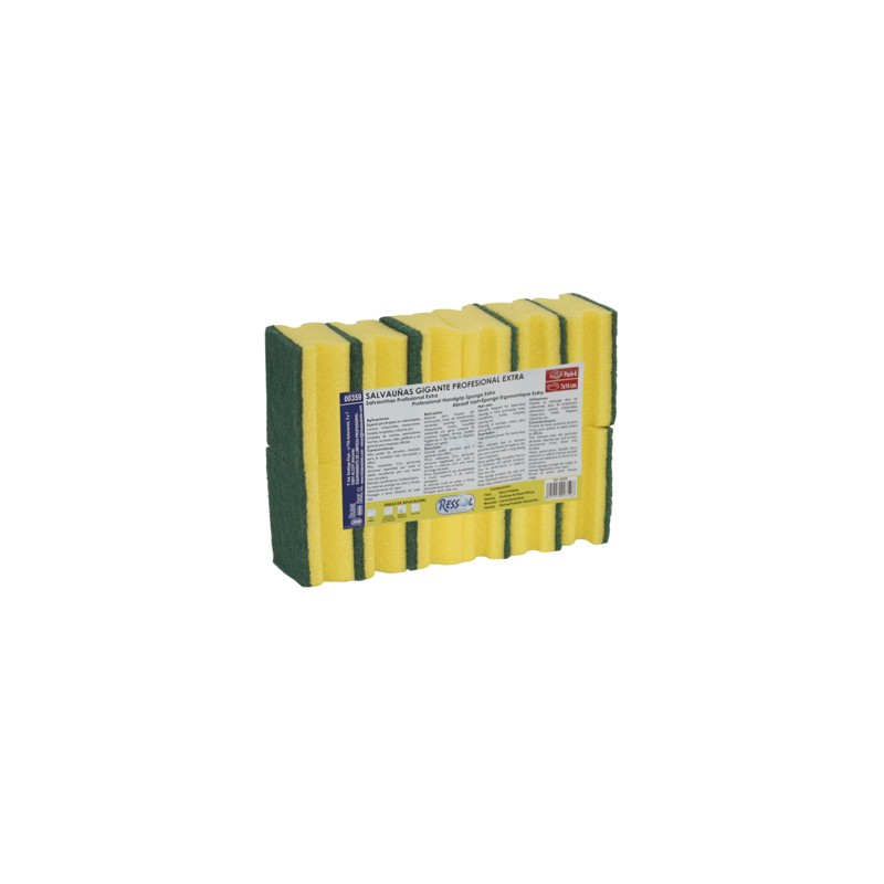 Salvauñas con fibra verde Extra. Calidad 1ª. Especial para limpieza de cocinas, quemadores, suelos y en general para limpiezas difíciles.La fibra limpia las superficies y la esponja limpia y seca.