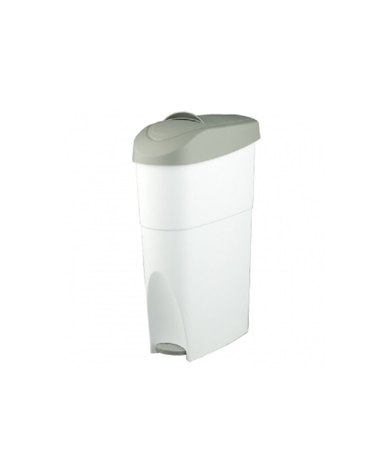 Papelera – contendor higiénica femenina esta fabricada em material Plástico ABS gris con capacidad de 20 Litros, consta de cabezal reversible y tapa basculante integrada . Contenedor para depositar las compresas sanitarias femeninas. Trampilla para depositar las compresas, integrada en tapa superioir y con apertura mediante pedal.