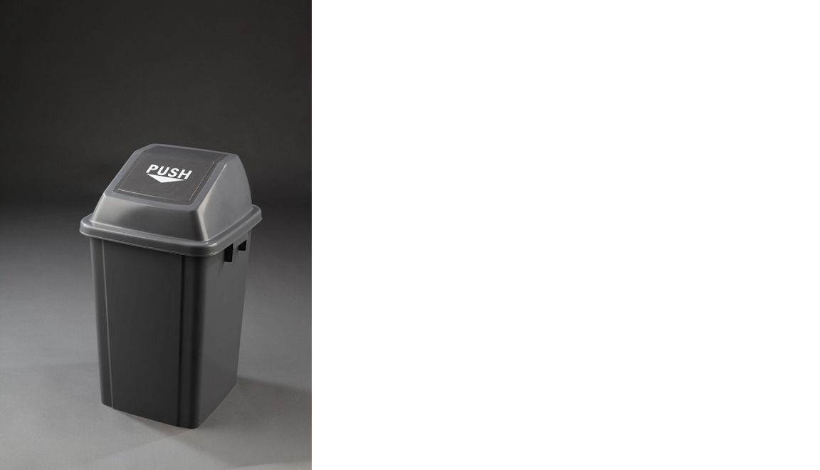 Papelera push de plástico color gris con tapa frontal basculante push fabricada en polietileno de alta densidad ideal para el reciclaje y la recogida de cualquier residuo.