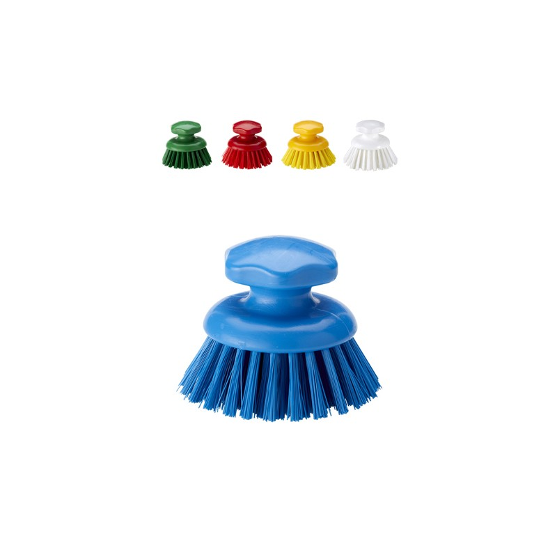 Cepillo manual redondo recomendado para la limpieza e higiene en industria alimentaria, tanques, contenedores, mesas de trabajo, superficies donde se manipulen los alimentos, partes de maquinaria, etc.