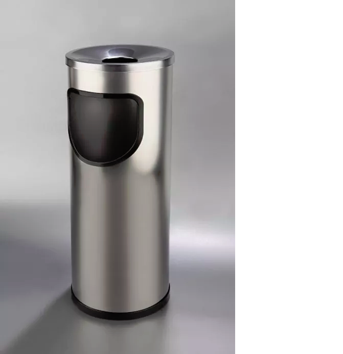 .En la parte de arriba, se sitúa el colillero o cenicero, este se compone de acero pulido y ello le aporta mayor resistencia y durabilidad. En el resto de la parte cilíndrica, la papelera tiene una abertura lateral por la que se depositan el resto de residuos. Por sus características y funcionalidad, la papelera cenicero está diseñada en especial para los espacios interiores y exteriores protegidos, así como pueden serlo terrazas, patios, áreas de fumadores, entradas a lugares públicos como pueden serlo centros comerciales, parques, centros de ocio, hoteles, restaurantes, hospitales…Por lo general es práctica para un sin fin de lugares en los que frecuentan fumadores, o incluso para los propios trabajadores de ciertos negocios.