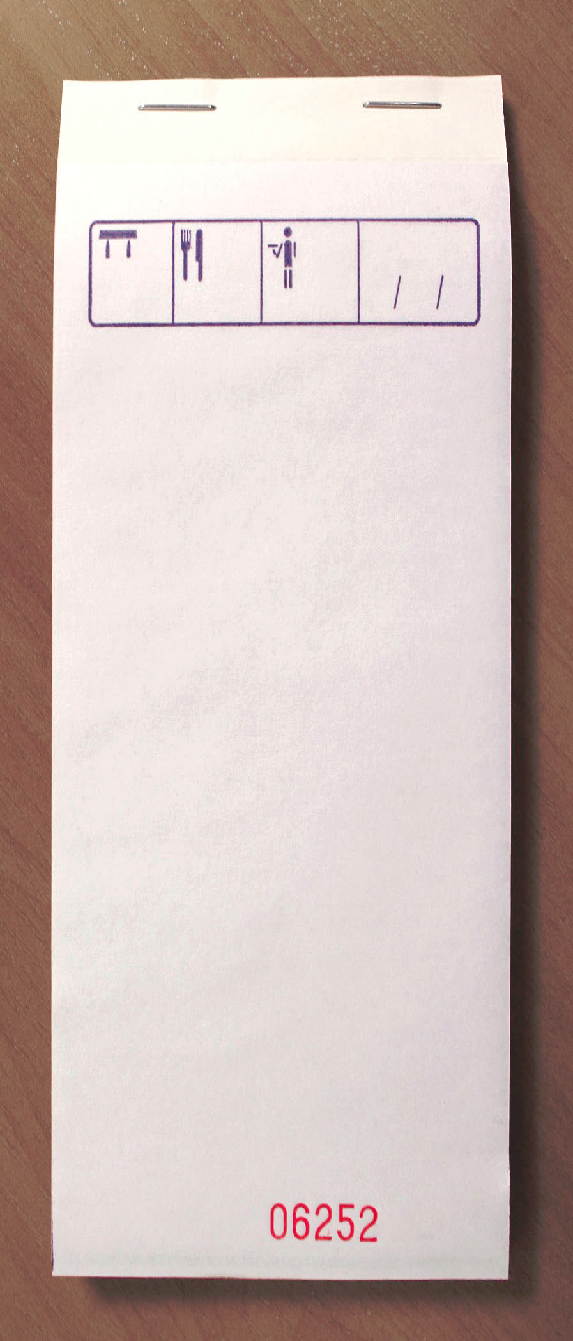 Los talonarios autocopiativos mini con una medida de 7,5 x 15 cms son ideales por su tamaño guardarlo en el bolsillo. Uso por parte de profesionales de la hostelería para tomar notas de pedidos de mesa. Nos permite emitir escritos manuales con múltiples copias en muy poco tiempo Incorporan una tapa de cartón . Con Iconografía para anotación de número de comensales, camarero, fecha, etc. Blocs comandas estándar duplicados de 10 x 15 cm – 50 x 2 hojas (Pack de 10 Uds) Autocopiativos, no necesita papel carbón. Este Bloc de comandas está encolado en la parte superior para mantener sujetas las hojas a la vez que permite separarlas de forma sencilla sin romper el papel .Destaca por su papel duplicado que funciona mediante calco. Así se puede gestionar la mesa con el original y guardar la copia para cocina.